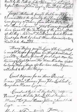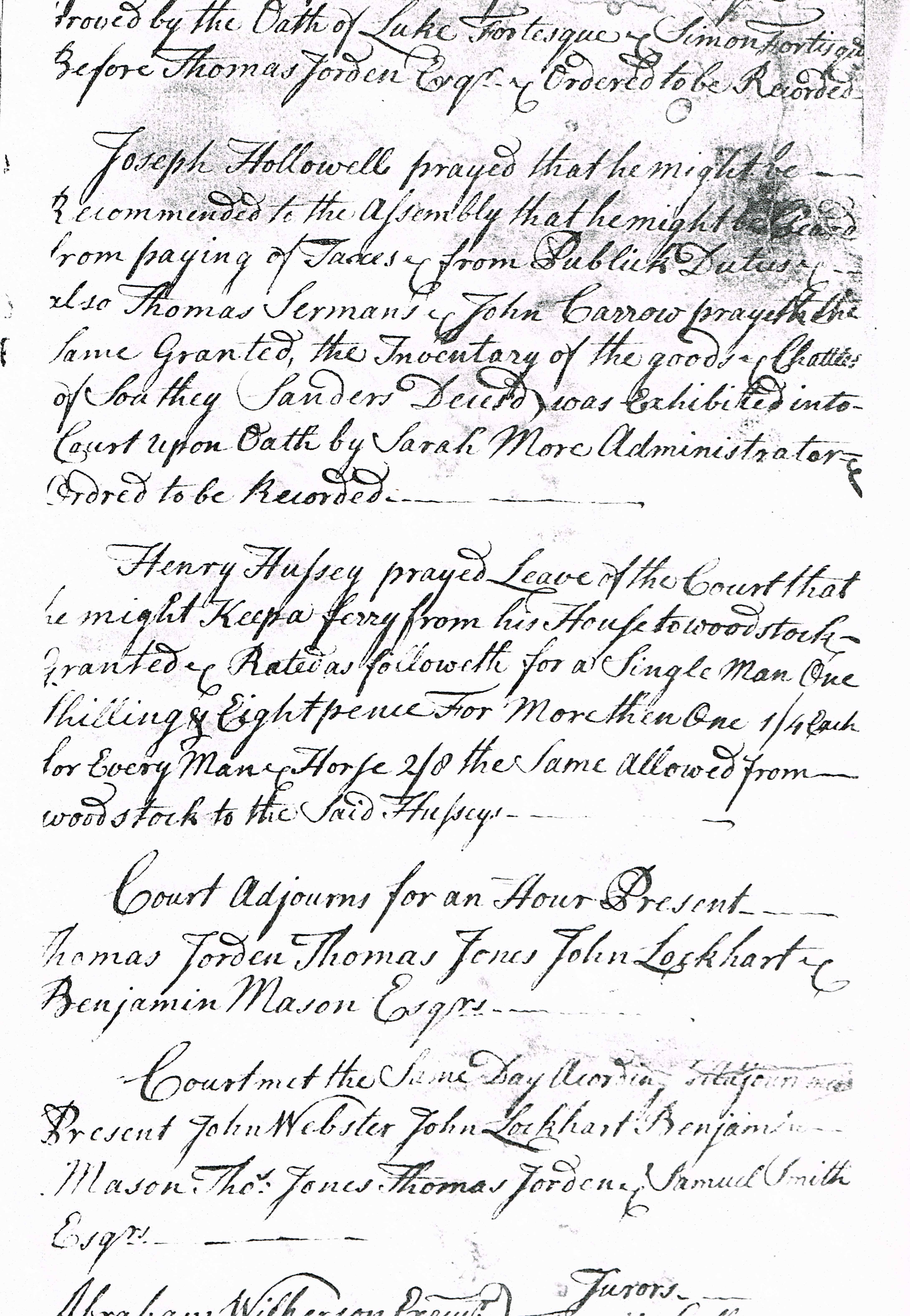 In June of 1765, he petitioned the Hyde County Court for permission to operate a ferry service between his house on the eastern bank of the Machapounga River (Pungo River) and Woodstock on the western bank of the river. Woodstock was the county seat for Hyde County from 1738 to 1778. He charged: