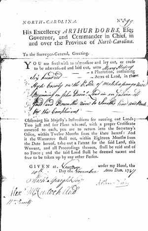 him in the English colony known as the Province of North Carolina in 1753. At that time he